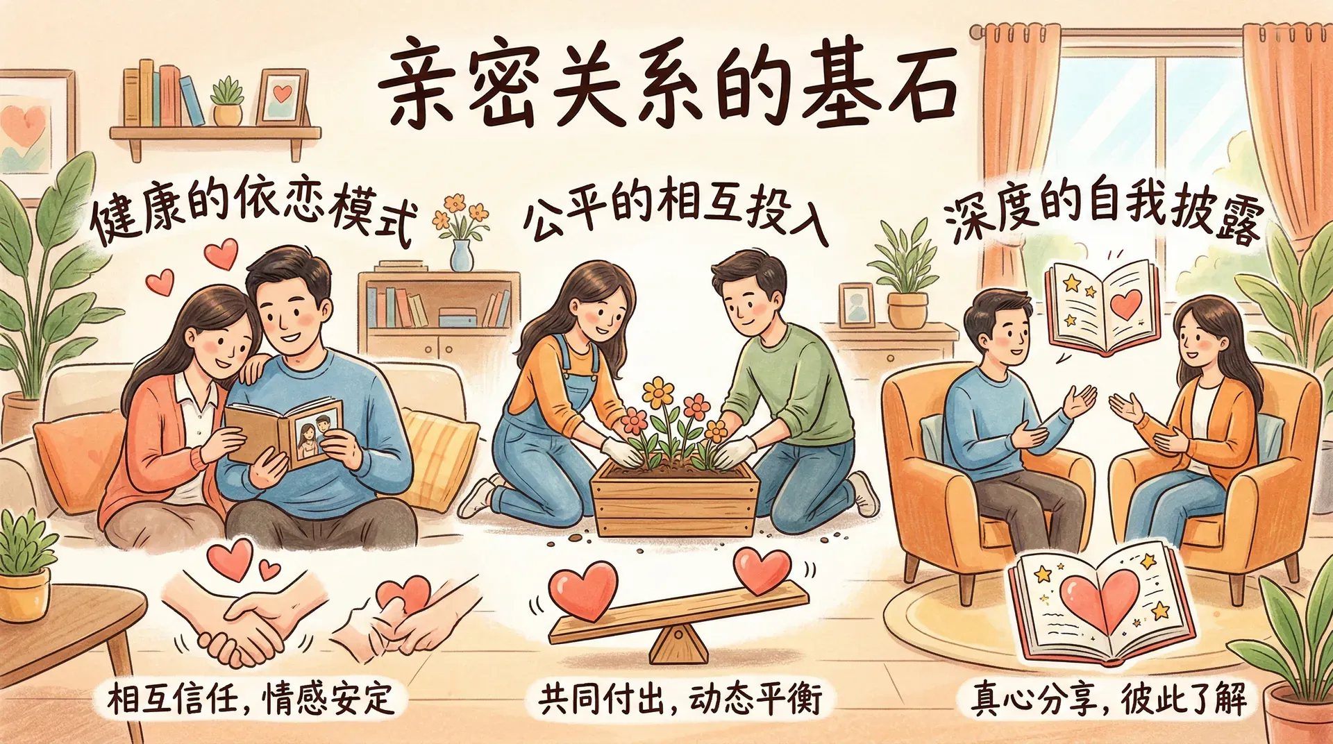 建立一段深刻而持久的亲密关系并非易事,它需要多种心理要素的共同作用。心理学研究发现,成功的长期关系通常具备三个核心要素:健康的依恋模式、公平的相互投入,以及深度的自我披露。理解这些要素,能帮助我们构建更加稳固和满意的人际关系。